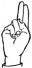 На ћирилици написано АНДРЕЈ МИЛОШИЧЕВИЋ састоји се из 17 слова [?]. Исписано ћириличном једноручном азбуком за глувонеме: